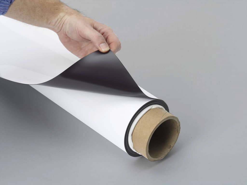 Magnetic sticker decal backing with a brown or white matte surface finish. Dedicated to application on metalized substrates. Due to the higher attraction force, the magnetic mat is most often used in the production of larger graphic formats. Often chosen for the production of graphics for vehicles and easily replaceable advertising messages on POS shelves, display elements and as teaching material.